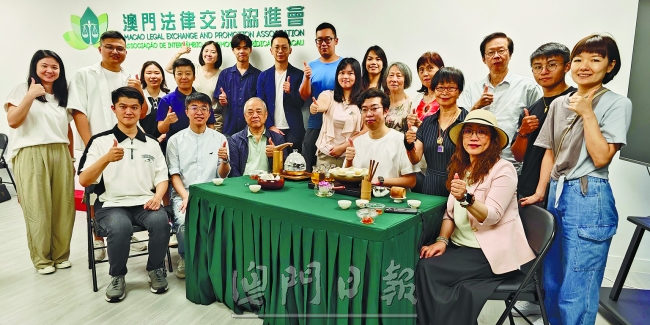 澳門法律交流協進會與澳門茶藝協會合辦的“煮茶 · 論法”活動昨日在法進會會址舉行。法進會會長黃景禧、茶會理事長曾比鏗以及兩會會員,逾二十人參與活動。